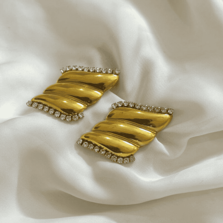 The unique wave-inspired design adds a modern twist, while the sparkling crystals give them a radiant shine that catches every eye. Whether styled with casual wear, formal outfits, or traditional attire, these earrings are versatile enough for any occasion.